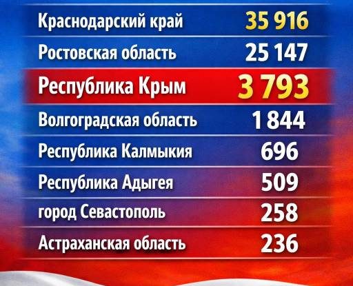 Свежий срез голосования по премии «Служение» показывает, что Республика Крым пока заметно отстаёт от лидеров ЮФО — Краснодарского края и Ростовской области. Чтобы наши проекты вошли в число победителей, необходимо активнее голосовать.